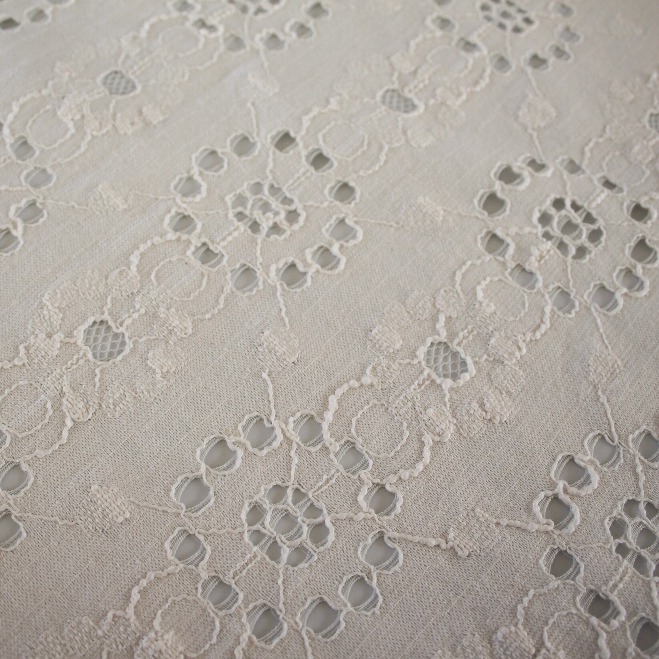意匠撚糸こんにゃく糊付け加工糸を使用したレース。