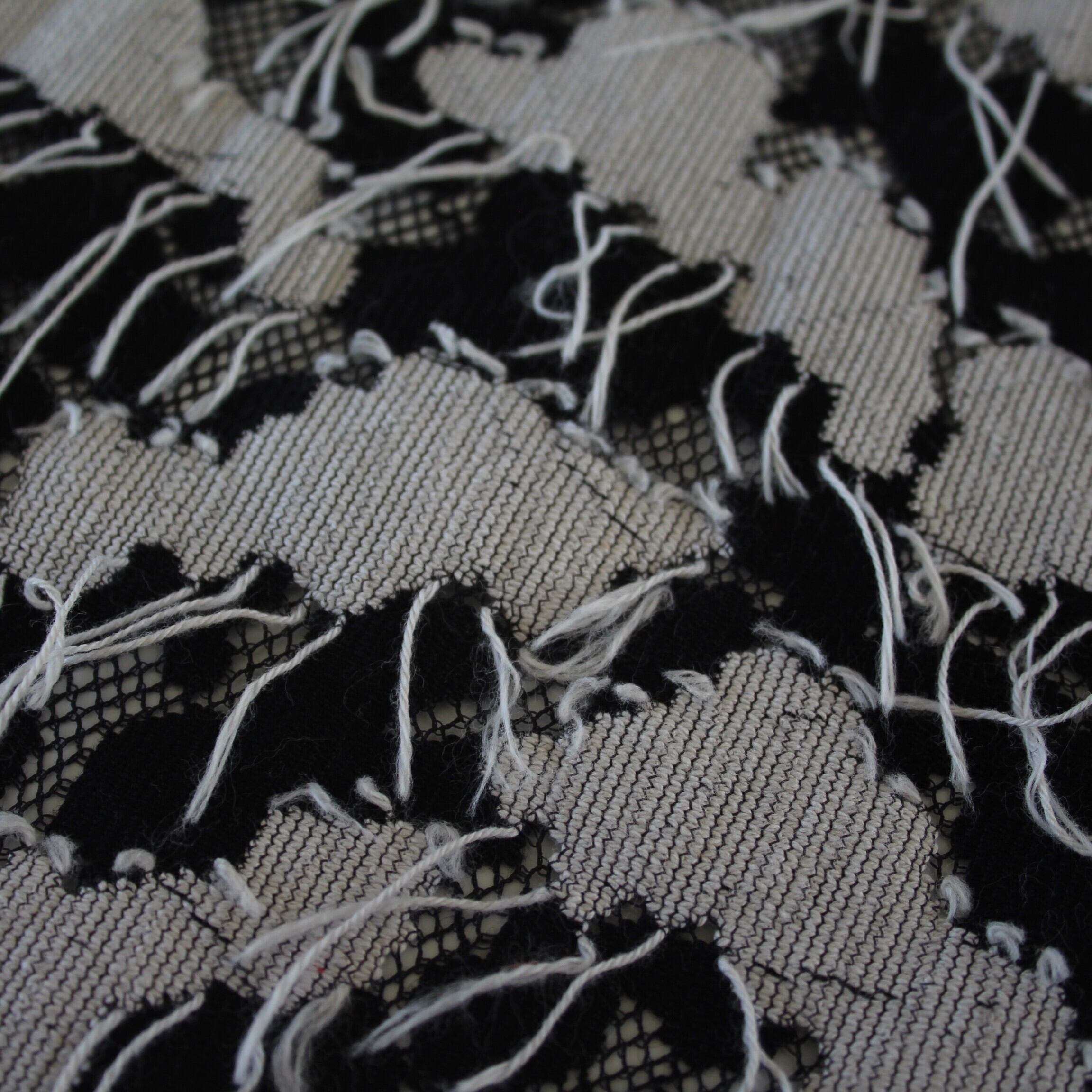 生地から糸が飛んでいるカモフラージュ柄のレース。